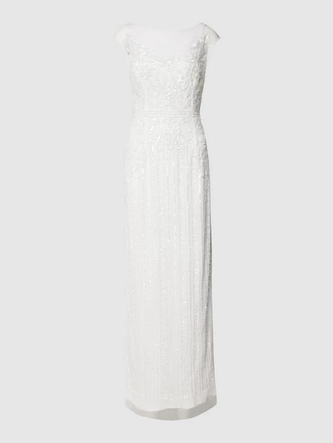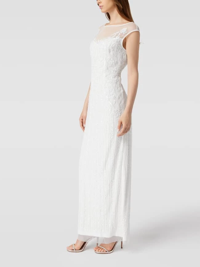 Das Abendkleid von Adrianna Papell ist aus einem strapazierfähigen Material gefertigt und tailliert geschnitten. Es zeigt sich im unifarbenen Design mit floraler Applikation.