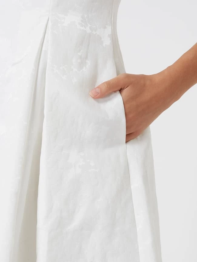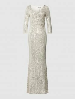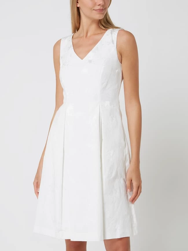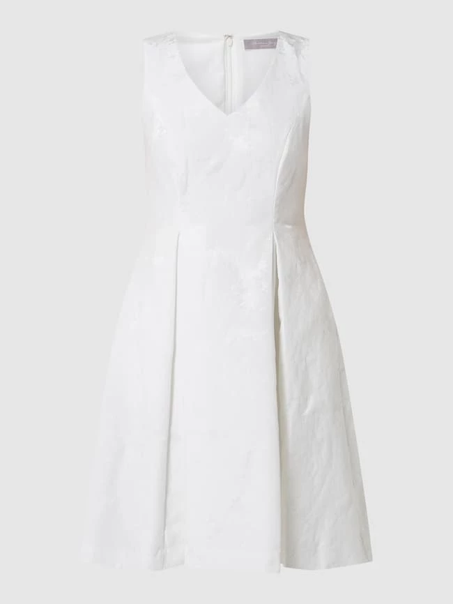 Das Brautkleid von Christian Berg Cocktail ist aus einer Baumwollmischung gefertigt und tailliert geschnitten. Es kommt mit V-Ausschnitt, seitlichen Eingrifftaschen und Kellerfalten.