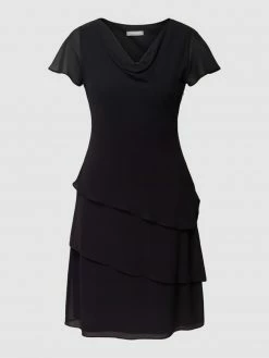 Das Brautkleid von Christian Berg Cocktail ist aus Satin gefertigt und tailliert geschnitten. Es kommt mit Rundhalsausschnitt, Taillenpasse und seitlichem Nahtreißverschluss.