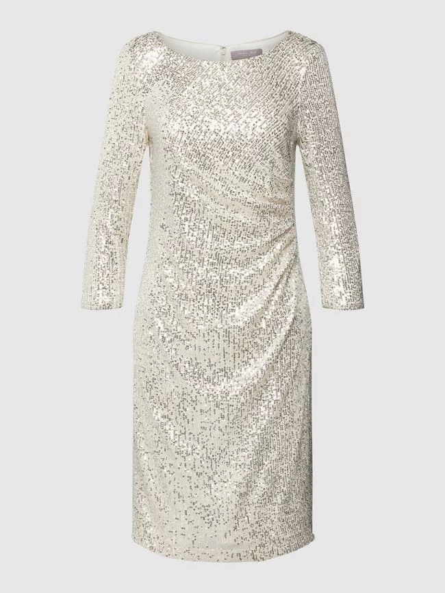 Das Cocktailkleid von Christian Berg Cocktail ist aus einem Material-Mix mit Elasthan-Anteil gefertigt und tailliert geschnitten. Es zeigt sich mit Paillettenbesatz und Raffungen.