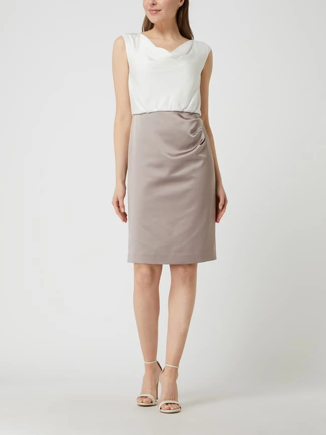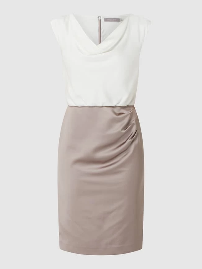 Das Two-Tone-Cocktailkleid von Christian Berg Cocktail ist aus Satin gefertigt. Es zeigt sich in eng anliegender Passform mit Wasserfall-Ausschnitt und Raffungen.
