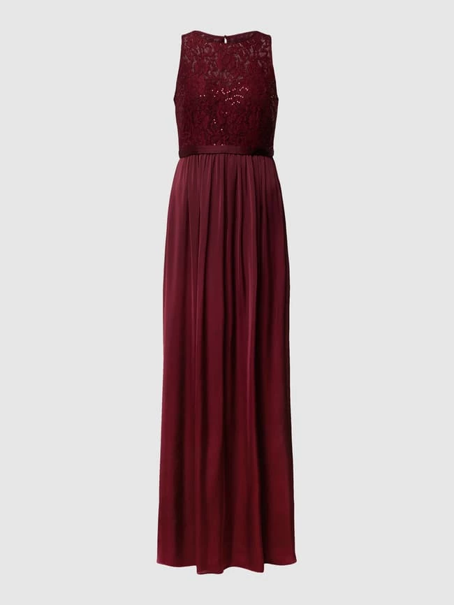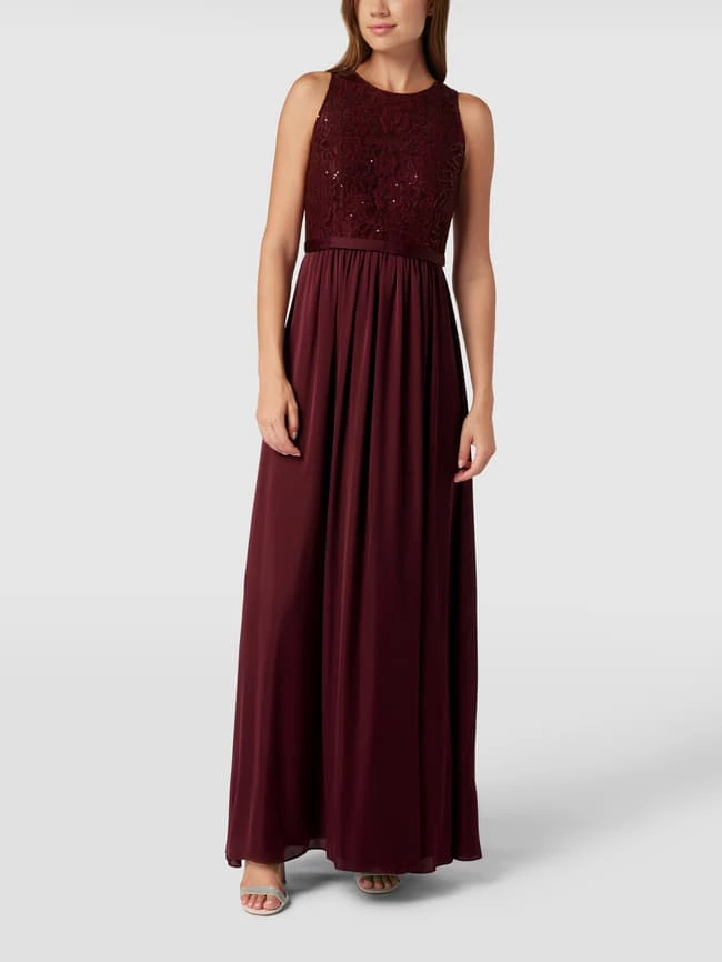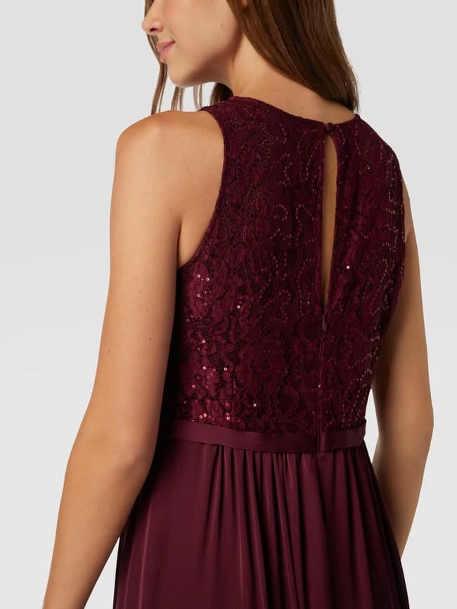 Das Abendkleid von Jake*s Cocktail ist aus strapazierfähigem Material gefertigt und leicht ausgestellt geschnitten. Es zeigt sich mit Strukturmuster, Paillettenbesatz, Rundhalsausschnitt und Reißverschluss.