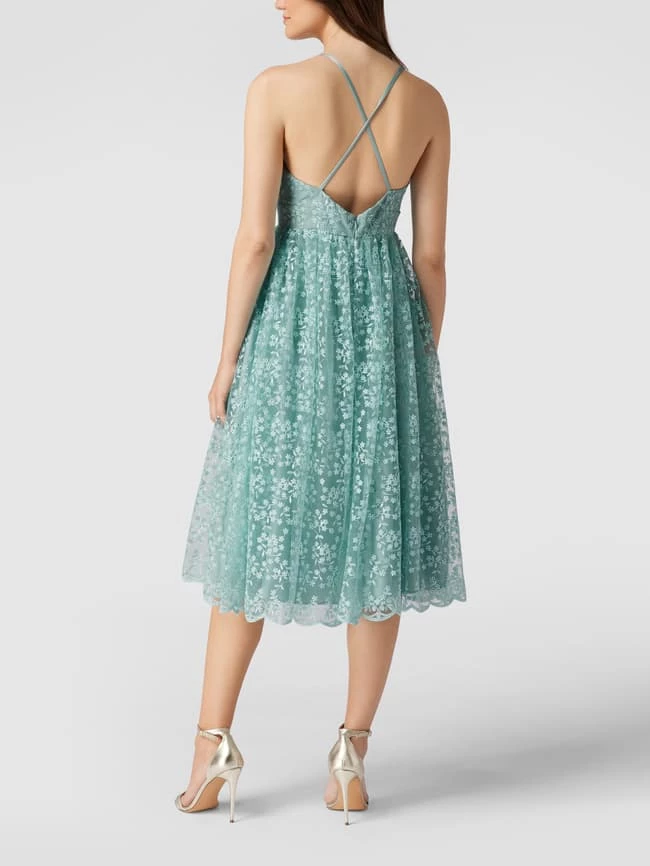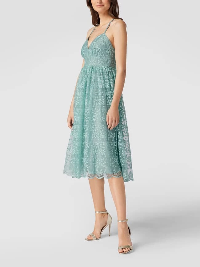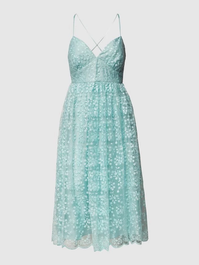 Das Cocktailkleid von Jake*s Cocktail ist aus strapazierfähigem Material gefertigt und tailliert geschnitten. Es kommt im ärmellosen Design mit Spaghettiträgern und floralen Stickereien.