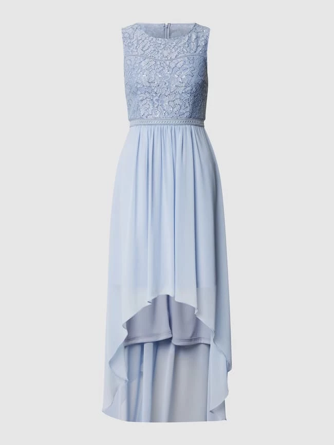 Das Cocktailkleid von Jake*s Cocktail ist aus einem strapazierfähigen Material mit Stretch-Anteil gefertigt und leicht tailliert geschnitten. Es zeigt sich in Vokuhila-Optik mit Stickereien und Paillettenbesatz.