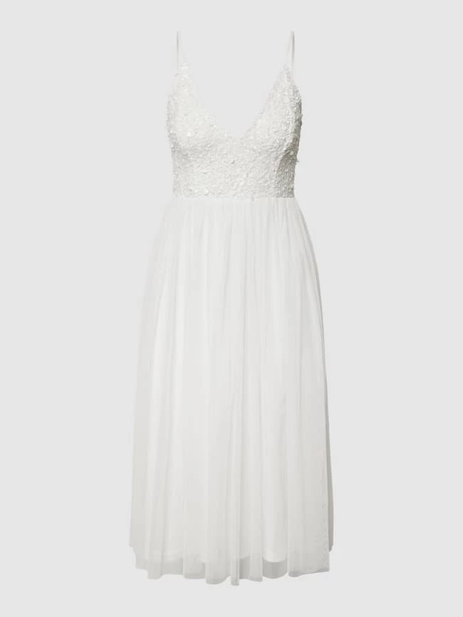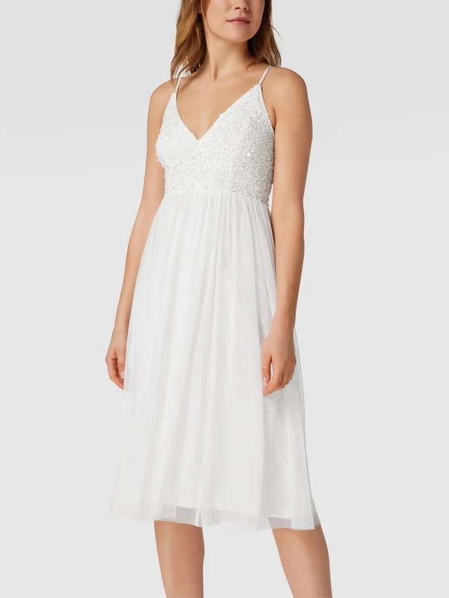 Das Brautkleid von Lace & Beads ist aus strapazierfähigem Material gefertigt und tailliert geschnitten. Es kommt mit verstellbaren Spaghettiträgern, Paillettenbesatz und ausgestellter Rockpartie.