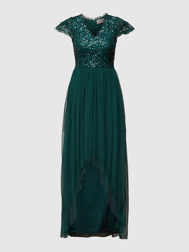 Das Cocktailkleid von Lace & Beads ist aus strapazierfähigem Material gefertigt und tailliert geschnitten. Es kommt mit Paillettenbesatz, V-Ausschnitt und asymmetrischem Saum sowie ausgestellter Rockpartie.