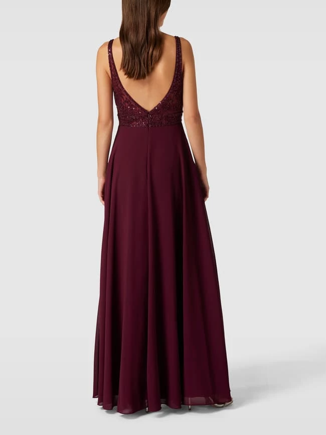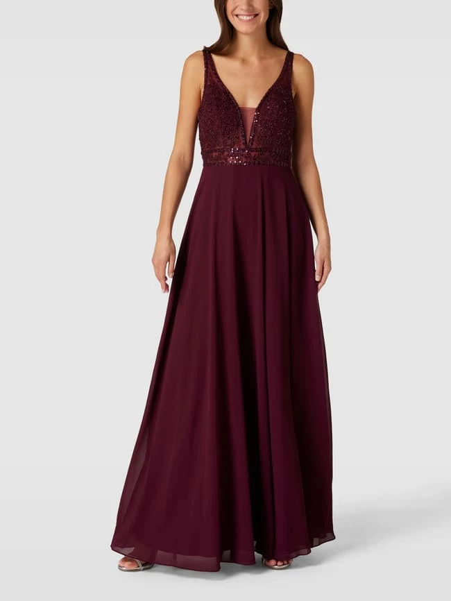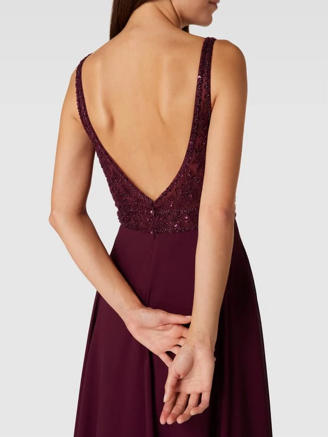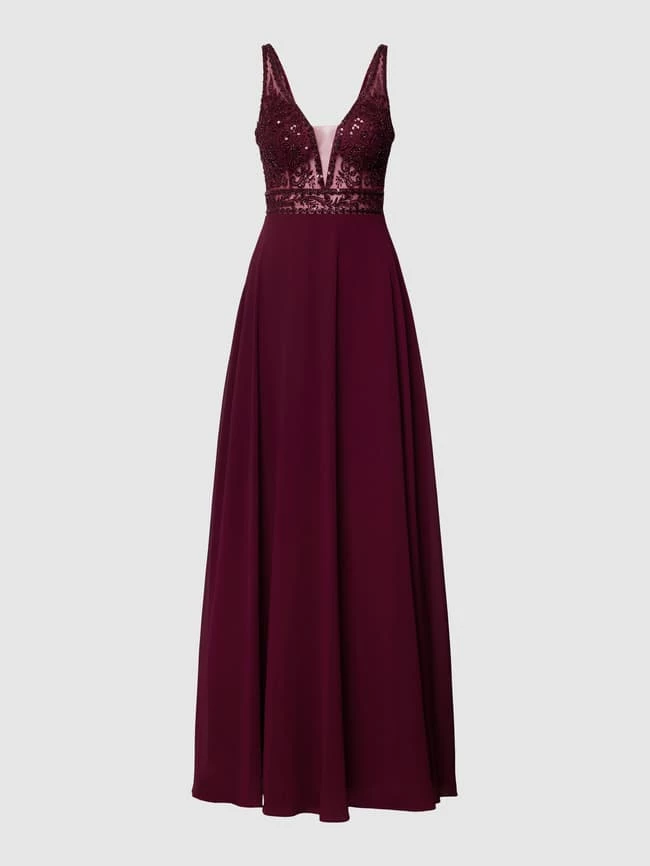 Das Abendkleid von LAONA ist aus einem strapazierfähigen Material gefertigt und tailliert geschnitten. Es zeigt sich mit floralen Stickereien und Zierperlen- sowie Paillettenbesatz.