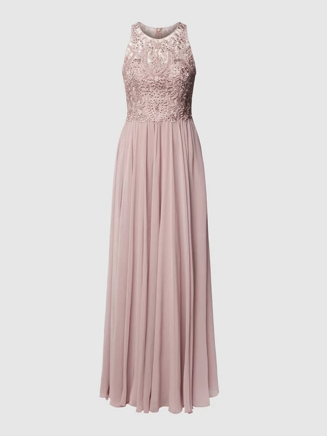 Das Abendkleid von LAONA ist aus Tüll gefertigt und tailliert geschnitten. Es kommt mit Strasssteinen, floraler Spitze, Nahtreißverschluss am Rücken und Rundhalsausschnitt.