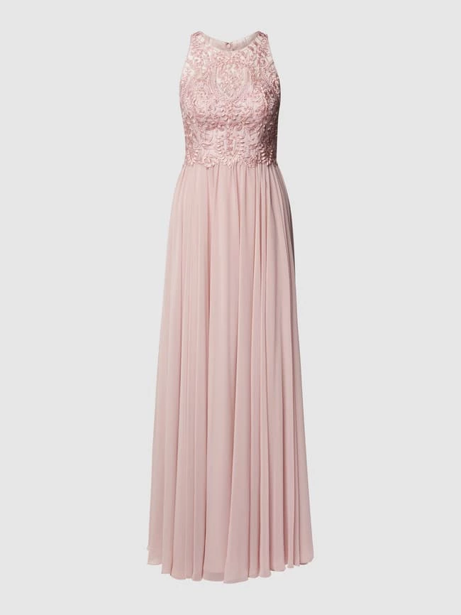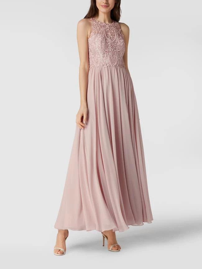 Das Abendkleid von LAONA ist aus strapazierfähigem Material gefertigt und tailliert geschnitten. Es kommt mit Zierbesatz, Rundhalsausschnitt und ausgestellter Rockpartie.