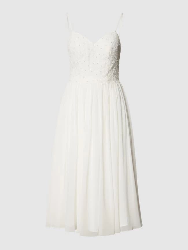 Das Brautkleid von LAONA ist aus strapazierfähigem Material gefertigt und tailliert geschnitten. Es zeigt sich mit Spaghettiträgern, floralen Stickereien, Zierperlen und mehrlagigem Rockteil. Das Brautkleid eignet sich perfekt für eine Hochzeit im Boho-Stil.