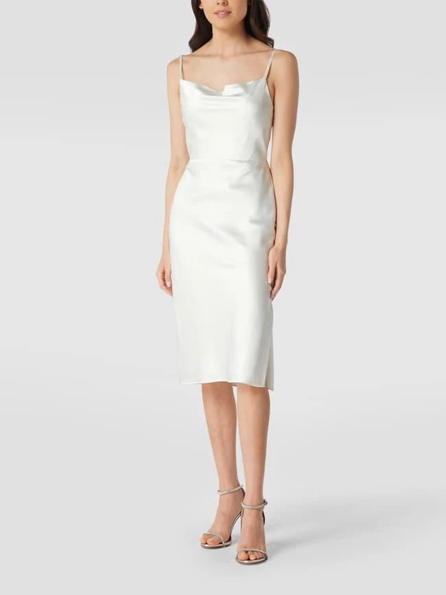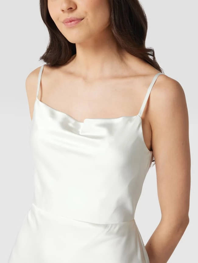 Das Brautkleid von LAONA ist aus strapazierfähigem Material gefertigt und eng anliegend geschnitten. Es kommt mit Wasserfall-Ausschnitt, Spaghettiträgern und Seitenschlitz.