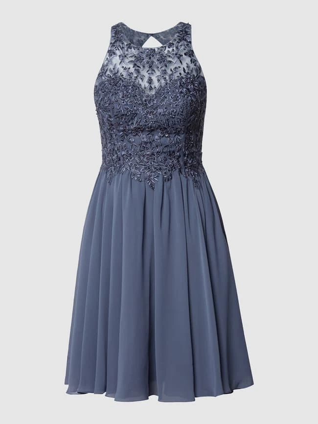 Das Cocktailkleid von LAONA ist aus strapazierfähigem Material gefertigt und tailliert geschnitten. Es zeigt sich mit floralen Stickereien, Besatz aus Ziersteinen, Cut Out am Rücken sowie doppellagigem Rockteil.