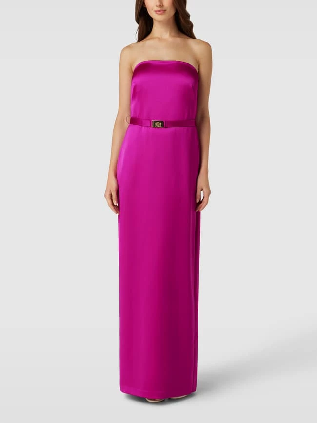 Das Abendkleid von Lauren Ralph Lauren ist aus einem strapazierfähigen Material gefertigt und im taillierten Schnitt gehalten. Es zeigt sich in unifarbenem Design sowie mit Spaghettiträgern und Taillengürtel.