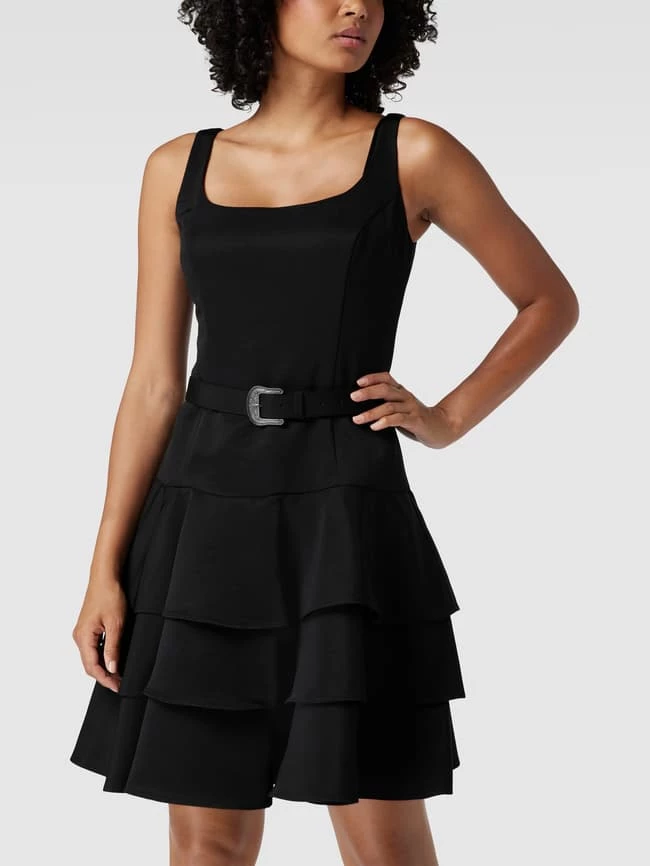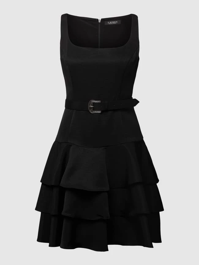 Das knielange Cocktailkleid von Lauren Ralph Lauren ist aus strapazierfähigem Material gefertigt und in tailliertem Schnitt gehalten. Es zeigt sich in Stufen-Optik mit Spaghettiträgern, Reißverschluss, U-Ausschnitt und Taillengürtel.