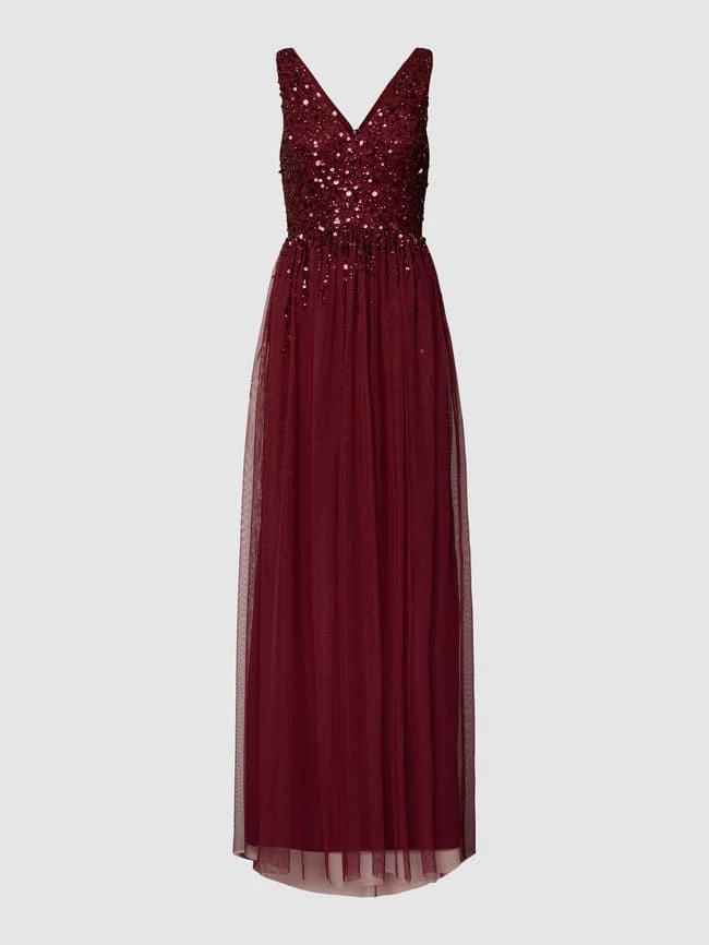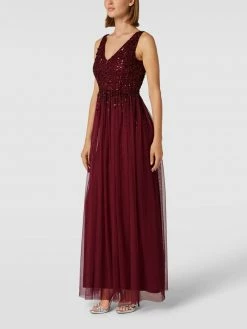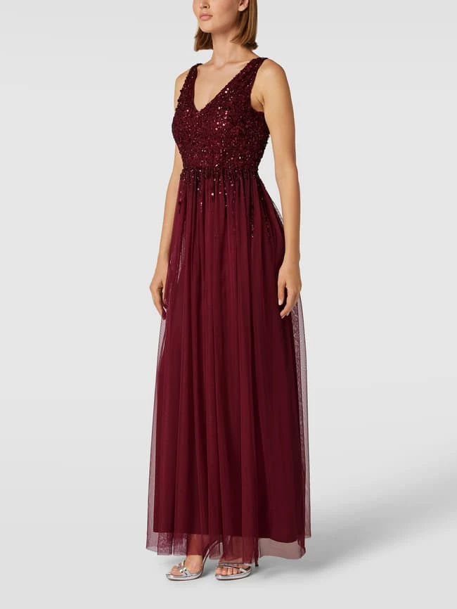 Das Abendkleid von Lipsy ist aus strapazierfähigem Material gefertigt und tailliert geschnitten. Es zeigt sich mit Paillettenbesatz, Haken- und Nahtreißverschluss sowie V-Ausschnitt.