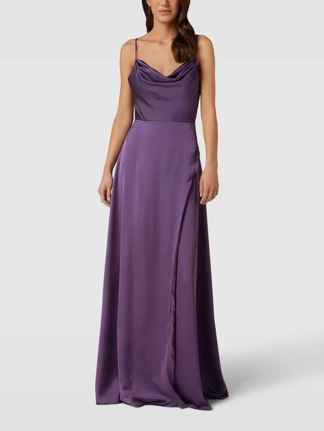 Das Abendkleid von LUXUAR FASHION ist aus einem strapazierfähigen Material gefertigt und tailliert geschnitten. Es zeigt sich in unifarbenem Design mit Wasserfallausschnitt sowie Ziernaht.