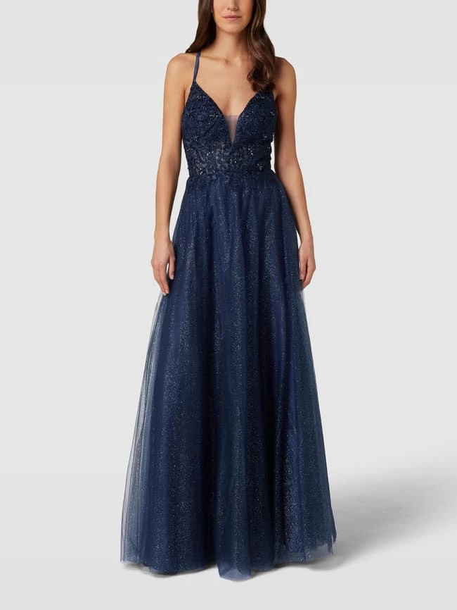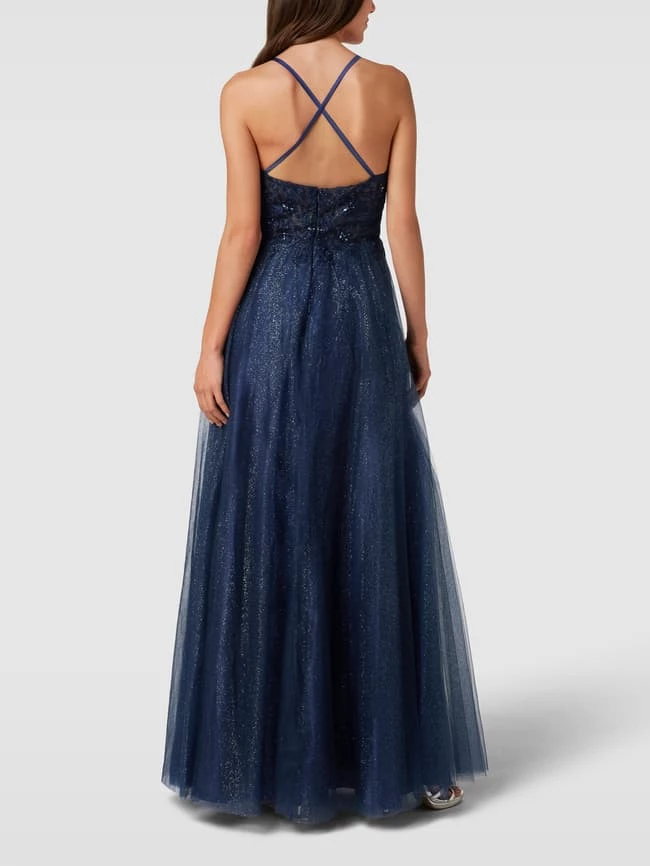 Das Abendkleid von LUXUAR FASHION ist aus einem strapazierfähigen Material gefertigt und ausgestellt geschnitten. Es zeigt sich in unifarbenem Design mit Herz-Ausschnitt sowie Zierbesatz.