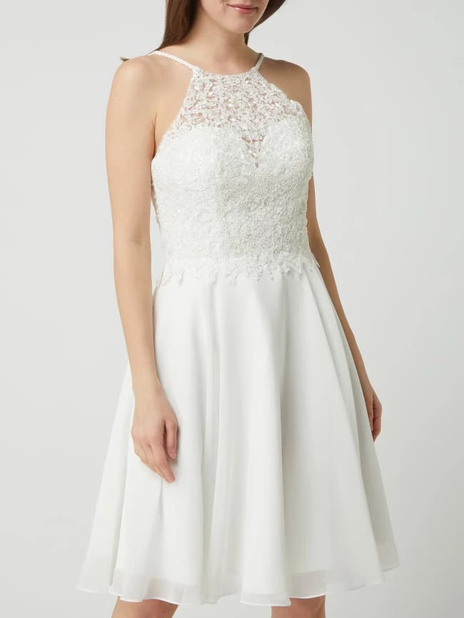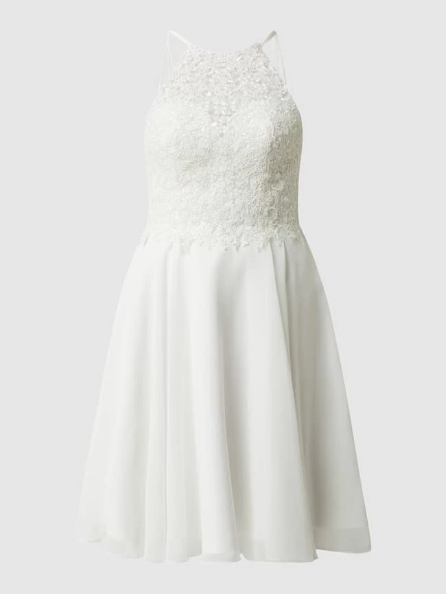 Das Brautkleid von LUXUAR LIMITED ist aus Spitze und Chiffon gefertigt. Es zeigt sich in taillierter Passform mit amerikanischem Ausschnitt, geflochtenen Trägern und Nahtreißverschluss auf der Rückseite.