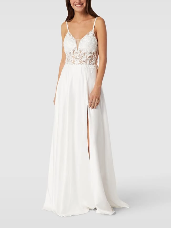 Das Brautkleid von LUXUAR FASHION ist aus einem strapazierfähigen Material gefertigt und tailliert geschnitten. Es zeigt sich im unifarbenen Design mit Details aus Spitze.