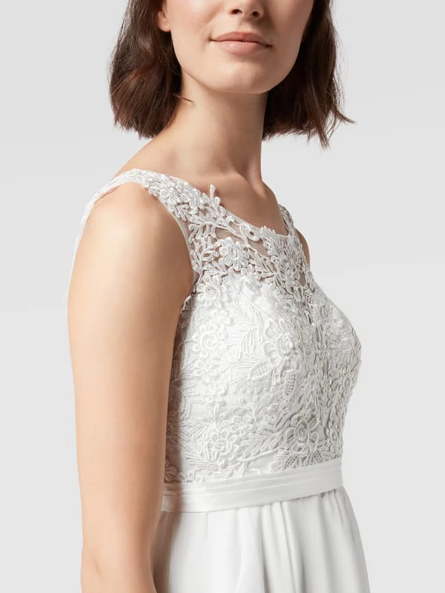 Das Brautkleid von LUXUAR FASHION ist aus strapazierfähigem Material gefertigt und tailliert geschnitten. Es kommt mit floralen Stickereien, Taillenpasse sowie doppellagigem Rockteil.