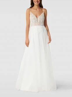 Das Brautkleid von LUXUAR FASHION ist aus einem strapazierfähigen Material gefertigt und tailliert geschnitten. Es zeigt sich im unifarbenen Design mit Ziersteinbesatz.