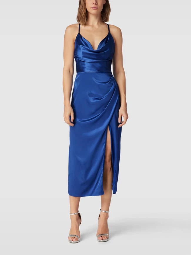 Das Cocktailkleid von LUXUAR FASHION ist aus einem strapazierfähigen Material gefertigt und tailliert geschnitten. Es zeigt sich in unifarbenem Design sowie Wickel-Optik mit Wasserfall-Ausschnitt.