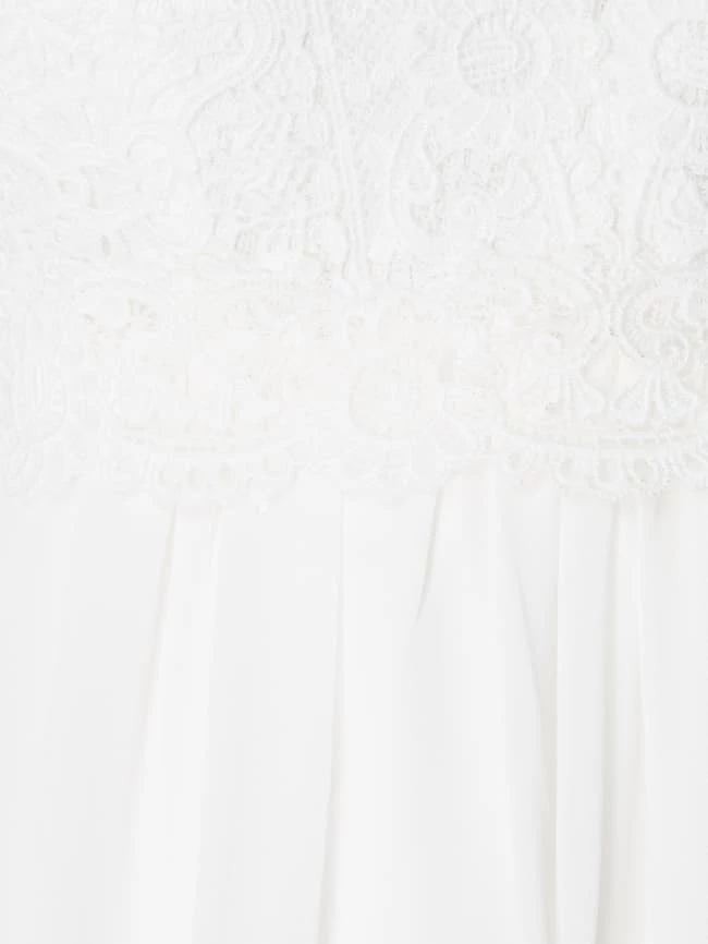 Das Umstandsbrautkleid von LUXUAR MAGIC BRIDE ist aus Häkelspitze und Chiffon gefertigt. Es zeigt sich in ausgestellter Passform mit tiefem Ausschnitt, Raffungen und schimmernden Zierknöpfen. Das Modell eignet sich perfekt für diejenigen, die von einem Brautkleid im Boho-Stil träumen.
