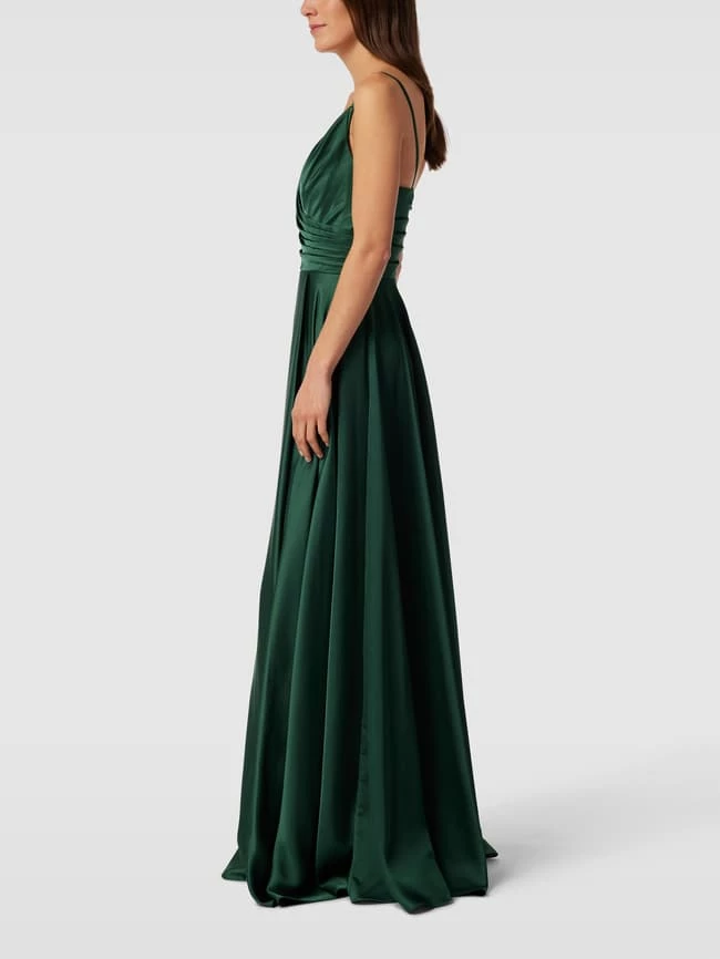 Das Abendkleid von Mascara ist aus strapazierfähigem Material gefertigt und ausgestellt geschnitten. Es kommt mit Spaghettiträgern, gelegten Falten und Gehschlitz.