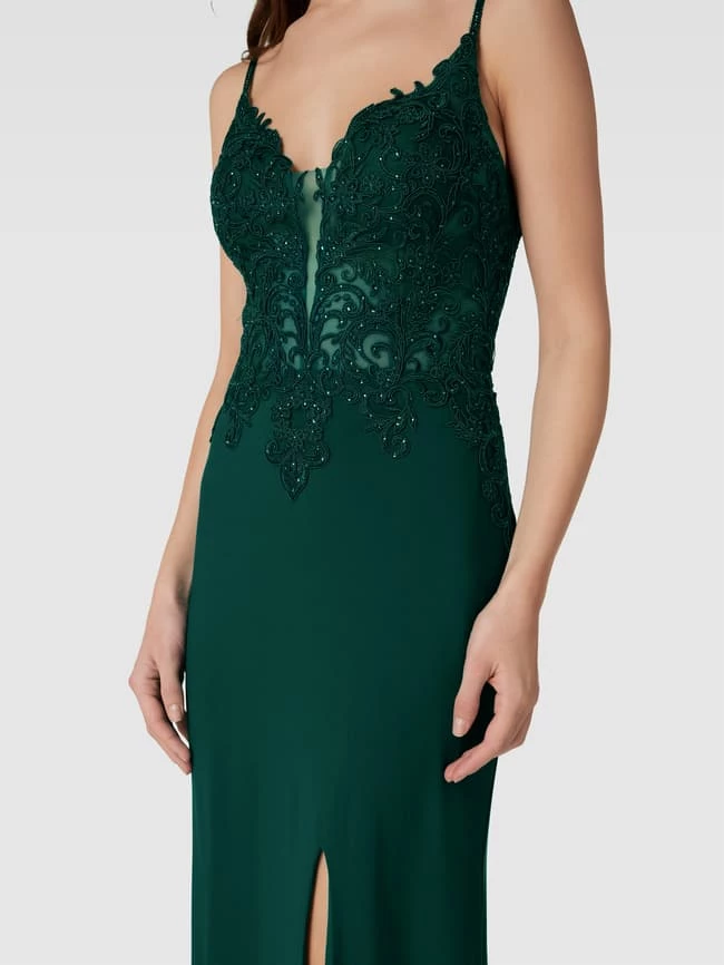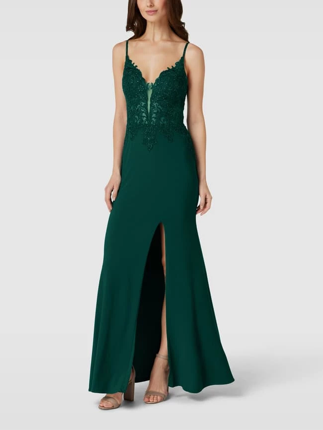 Das Abendkleid von Mascara ist aus einem strapazierfähigen Material gefertigt und im taillierten Schnitt gehalten. Es zeigt sich in unifarbenem Design mit Herz-Ausschnitt und Gehschlitz.