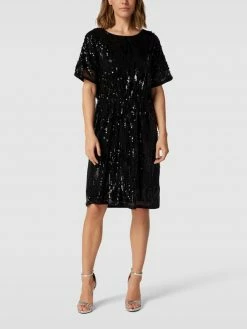 Das Kleid von MILANO ITALY ist aus einem strapazierfähigen Material gefertigt und tailliert geschnitten. Es zeigt sich in unifarbenem Design mit Paillettenbesatz sowie Rundhalsausschnitt.