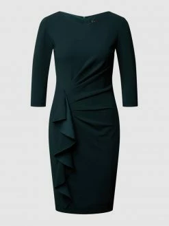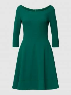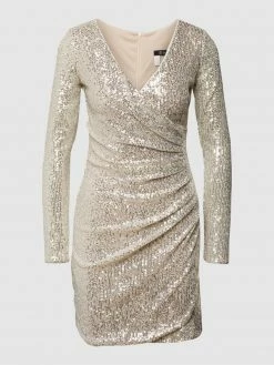 Das Brautkleid von Paradi ist aus einem elastischen Material-Mix gefertigt und tailliert geschnitten. Es kommt mit Rundhalsausschnitt, kurzen Ärmeln und ausgestelltem Rockteil.