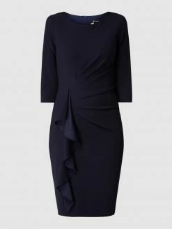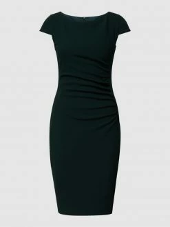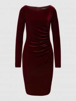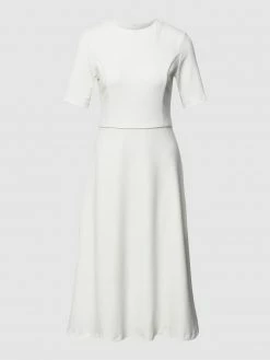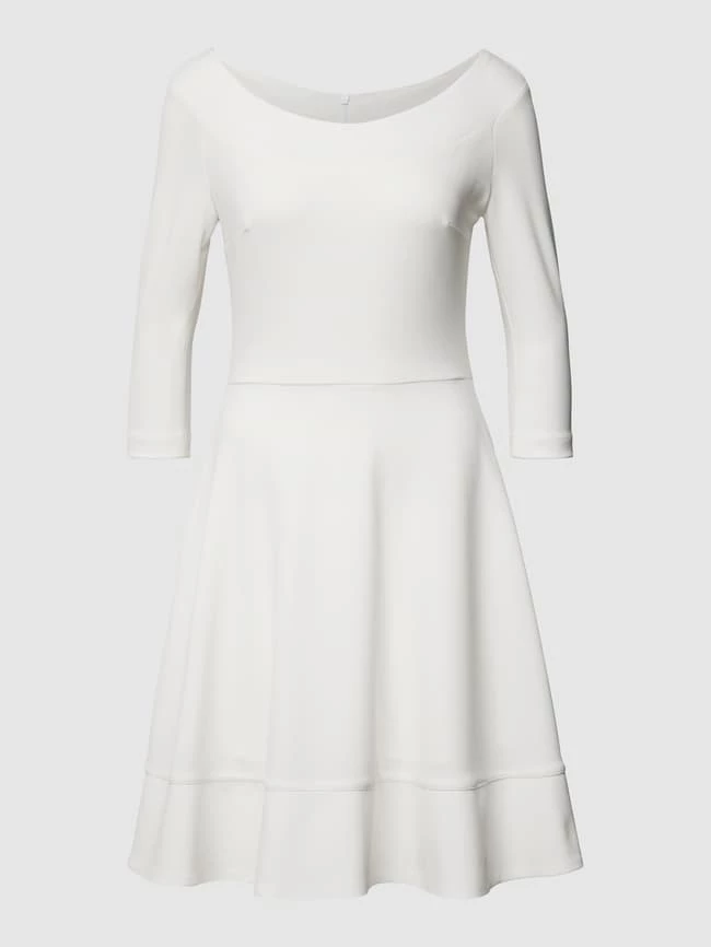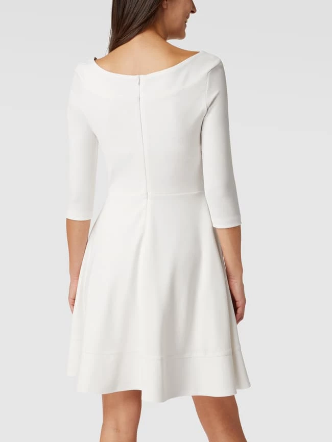 Das Brautkleid von Paradi ist aus einem elastischen Material-Mix gefertigt und tailliert geschnitten. Es kommt mit U-Boot-Ausschnitt, Ziernähten und ausgestellter Rockpartie.