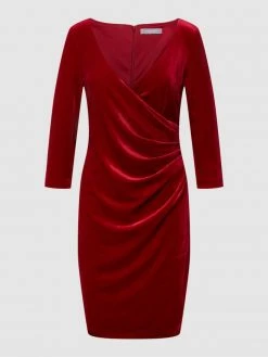 Das Cocktailkleid von Paradi ist aus einem Material-Mix mit Stretch-Anteil gefertigt und im taillierten Schnitt gehalten. Es zeigt sich in unifarbenem Design aus Samt mit V-Ausschnitt.