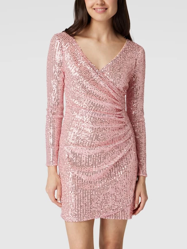 Das Cocktailkleid von Paradi ist aus einem elastischen Material-Mix gefertigt und eng anliegend geschnitten. Es kommt in Wickel-Optik mit Paillettenbesatz, V-Ausschnitt und Raffungen.