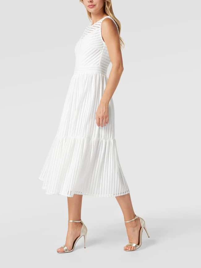 Das Brautkleid von SWING ist aus strapazierfähigem Material gefertigt und leicht tailliert geschnitten. Es zeigt sich im ärmellosen Design mit Rundhalsausschnitt.
