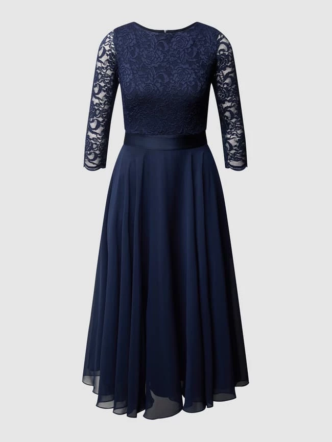 Das Brautkleid von SWING ist aus einem strapazierfähigen Material gefertigt und im taillierten Schnitt gehalten. Es zeigt sich in unifarbenem Design aus Häkelspitze und mit U-Boot-Ausschnitt.