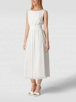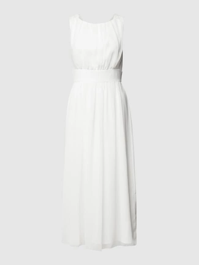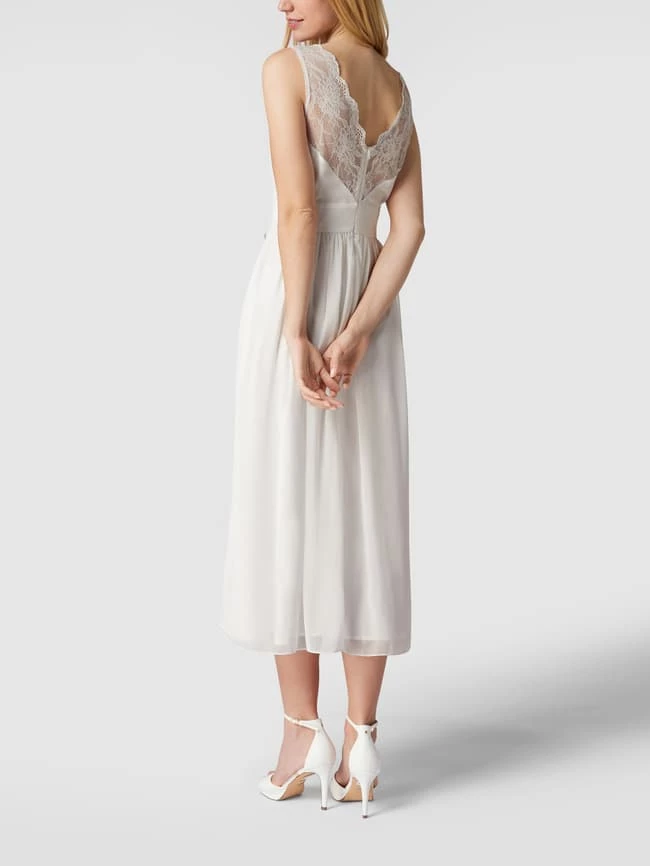 Das Brautkleid von SWING ist aus strapazierfähigem Material gefertigt und tailliert geschnitten. Es kommt mit Rundhalsausschnitt, Rückseite mit floralen Stickereien, Taillenpasse sowie doppellagigem Rockteil.