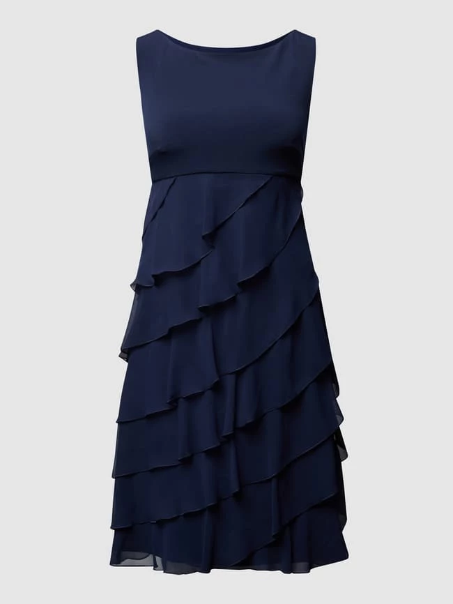 Zu besonderen Anlässen eine elegante Wahl: das Cocktailkleid von SWING. Das feminine Modell ist aus zartem Chiffon gefertigt und überzeugt im stilvollen Stufen-Look. Der Rückenausschnitt gewährt verführerische Einblicke.
