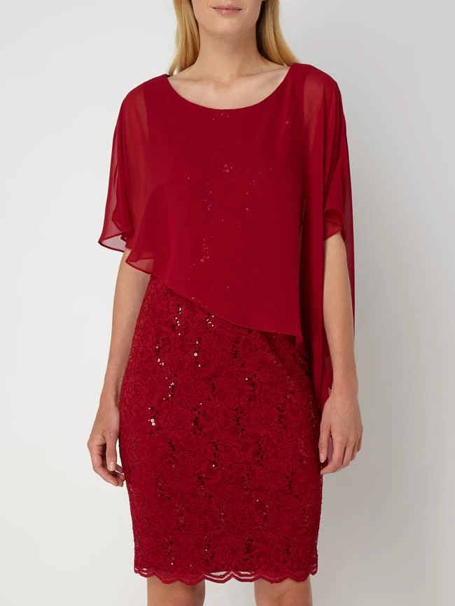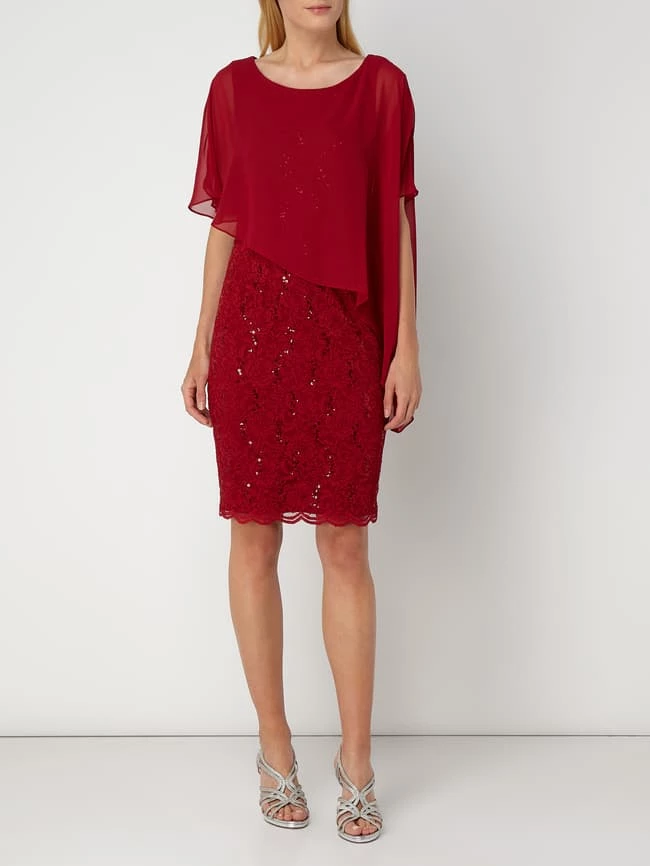 Ein besonderes Modell für besondere Anlässe: das Cocktailkleid von SWING. Es ist aus floraler Spitze gefertigt und kommt mit funkelnden Pailletten. Der locker fallende Besatz aus Chiffon wirkt wie eine elegante Stola.