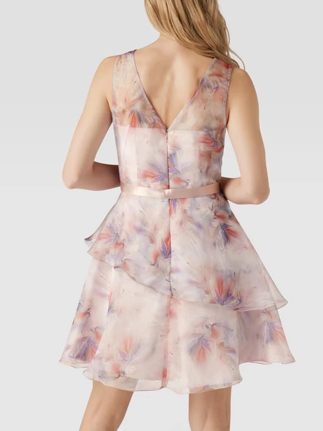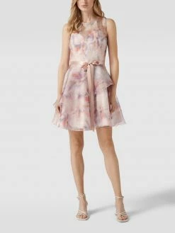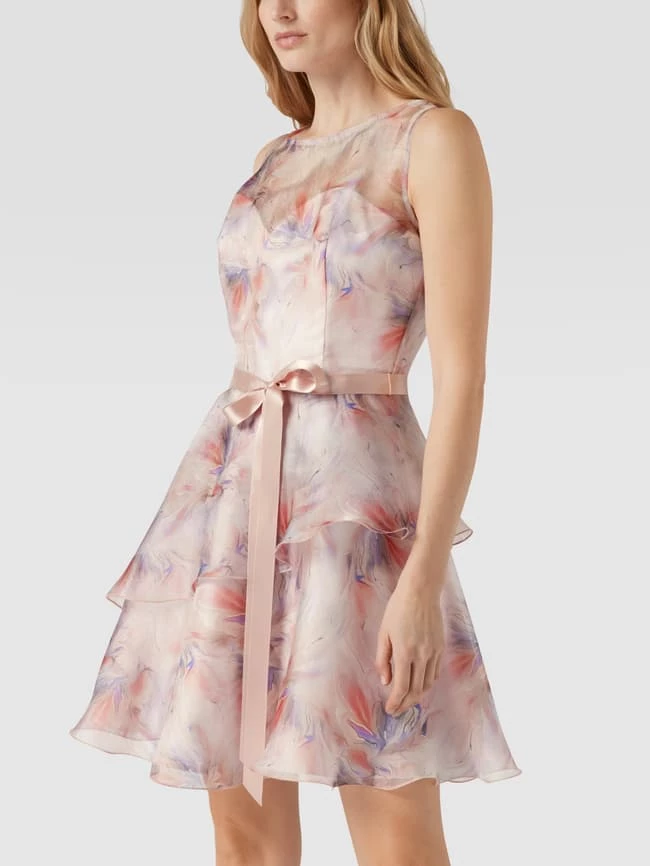 Das Cocktailkleid von SWING ist aus strapazierfähigem Material gefertigt und tailliert geschnitten. Es kommt mit floralem Muster, Herz-Ausschnitt und Taillenband sowie breiten Trägern.