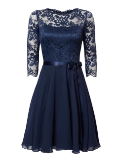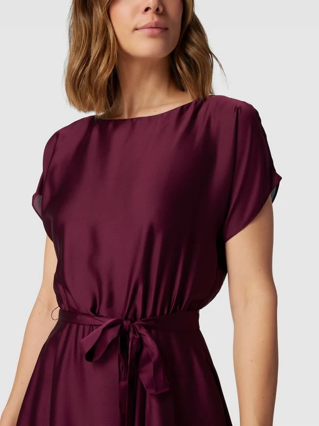 Das Kleid von SWING ist aus einem strapazierfähigen Material gefertigt und tailliert geschnitten. Es zeigt sich in unifarbenem Design mit Rundhalsausschnitt sowie Taillenband.