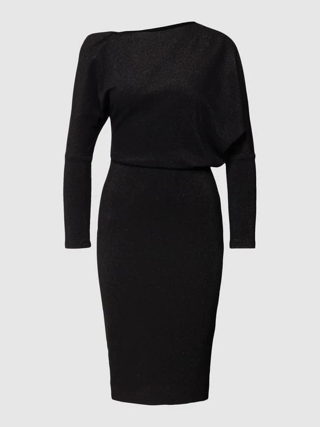 Das knielange Cocktailkleid von SWING ist aus einem Viskose-Mix mit Stretch-Anteil gefertigt und im körpernahen Schnitt gehalten. Es zeigt sich in unifarbenem Design mit Effektgarn und Ketten-Besatz.