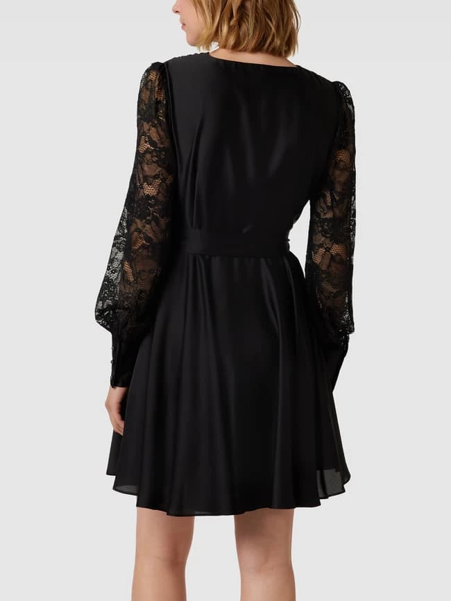 Das knielange Kleid von SWING ist aus einem strapazierfähigen Material gefertigt und im taillierten Schnitt gehalten. Es zeigt sich in unifarbenem Design mit V-Ausschnitt und Taillengürtel.