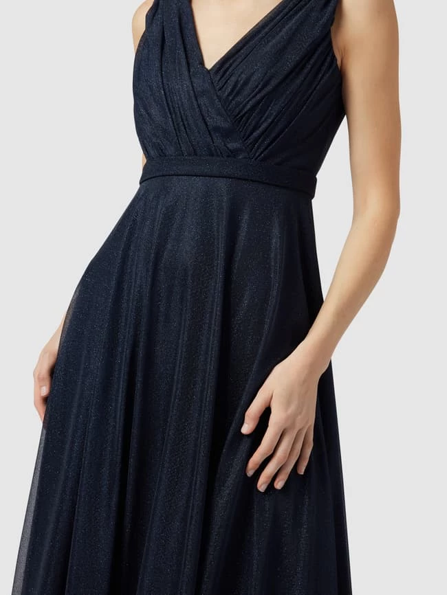 Das Abendkleid von TROYDEN COLLECTION ist aus schimmerndem Material gefertigt und tailliert geschnitten. Es kommt mit Taillenpasse und V-Ausschnitt sowie Oberteil mit Raffungen.