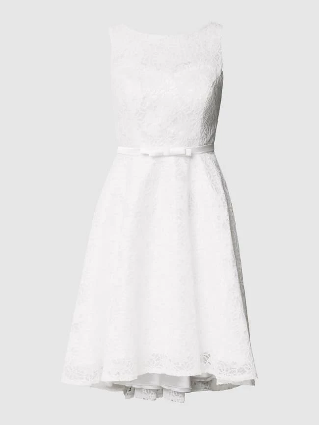 Das Brautkleid von TROYDEN COLLECTION ist aus strapazierfähigem Material gefertigt und tailliert geschnitten. Es kommt mit floraler Spitze, Herzausschnitt und Taillenband mit Schleifen-Applikation.