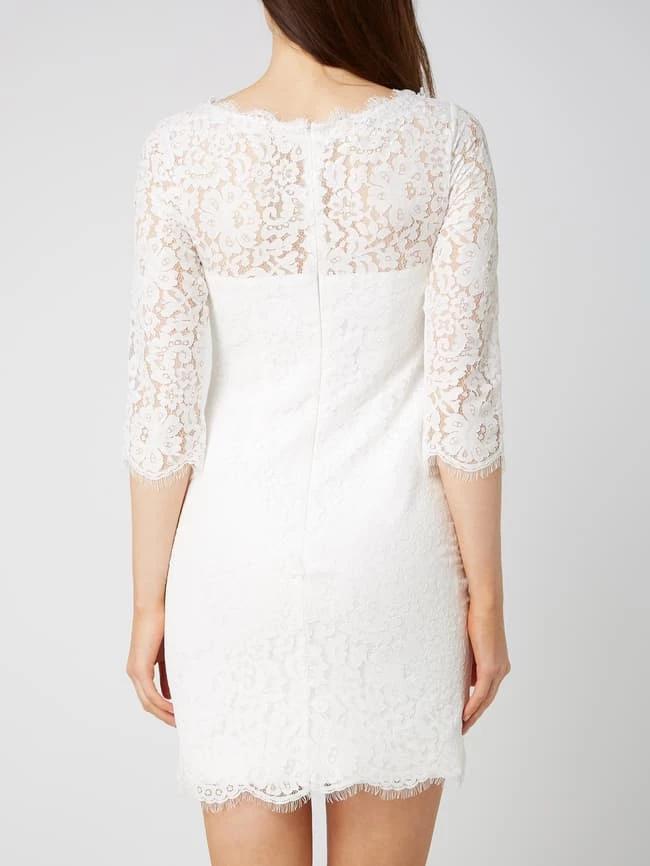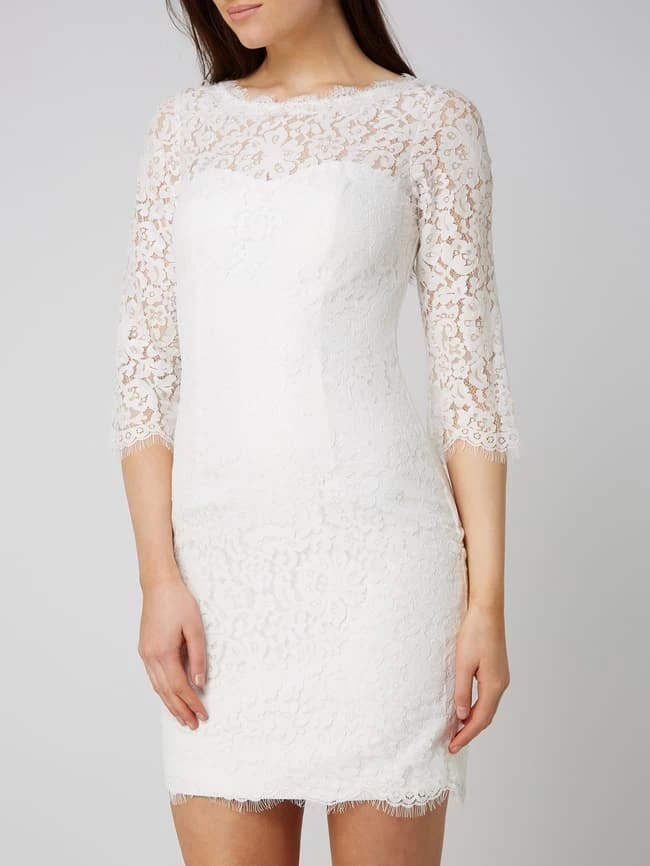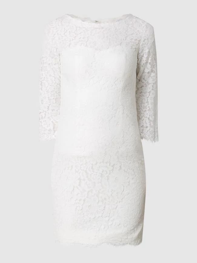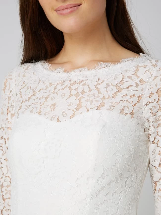 Das traumhafte Brautkleid aus filigraner, floraler Spitze von Unique sorgt für einen femininen Auftritt am schönsten Tag des Lebens. Das taillierte Modell mit Dreiviertel-Ärmeln ist knieumspielend geschnitten und um den Rundhalsausschnitt mit glitzernden Pailletten und Zierperlen geschmückt. Das blickdichte Unterkleid mit Herzausschnitt und die wattierten Cups sorgen für einen optimalen Sitz und betonen stilvoll die weiblichen Vorzüge.