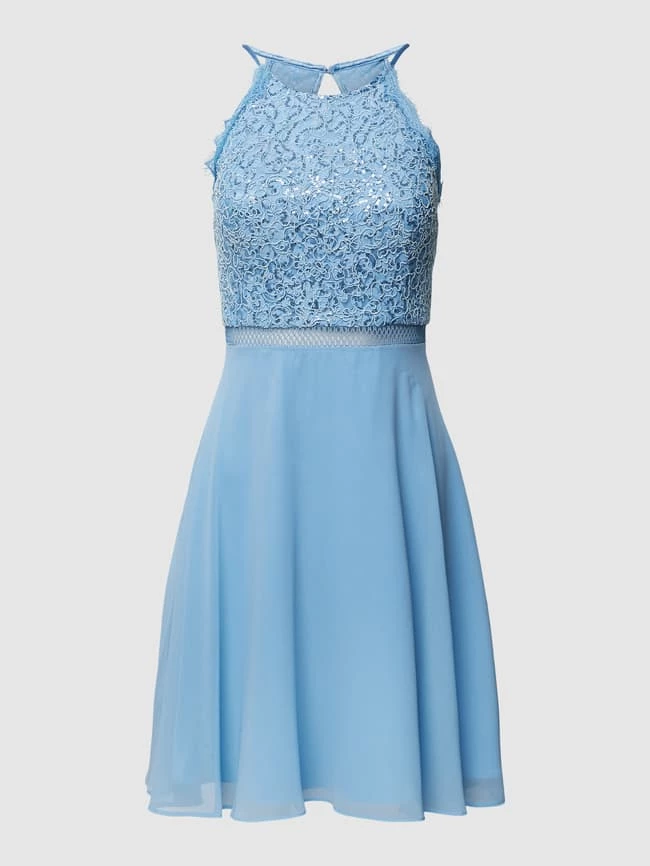 Das Cocktailkleid von Vera Mont ist aus strapazierfähigem Material gefertigt und ausgestellt geschnitten. Es kommt mit Spitzen- sowie Paillettenbesatz und Lochmuster in der Taille.